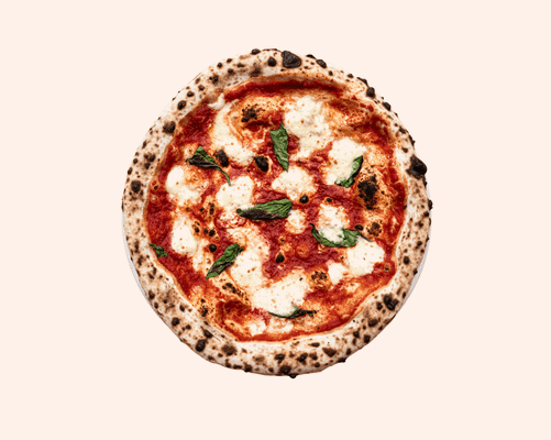 Tomato base, mozzarella, basil, extra virgin olive oil