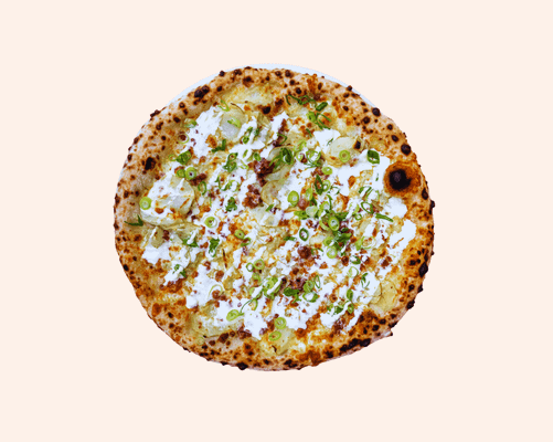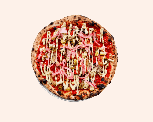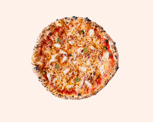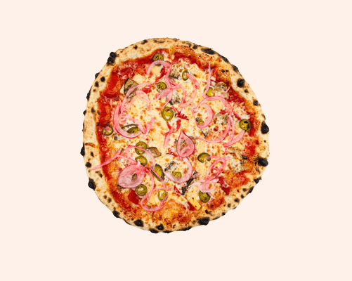 Tomato base, jalapeƱos, eggplant, roast capsicum, pineapple, LP cheese blend, pickled red onion