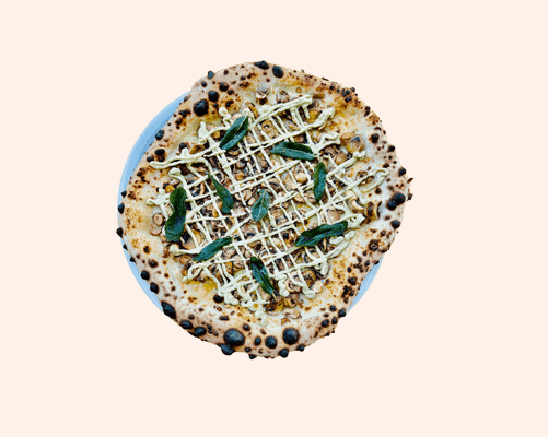 Roast garlic base, mushrooms, cashew cheese, fried sage, truffle oil