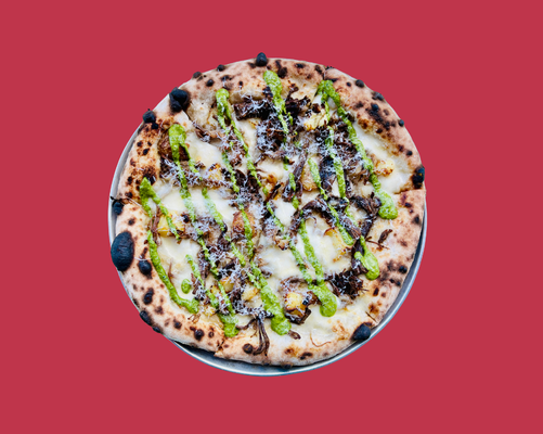 garlic base, slow-roasted lamb, crispy potatoes, mozzarella, parmesan, salsa verde