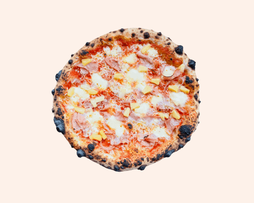 Tomato base, red onion, pineapple, shaved ham, provolone, mozzarella