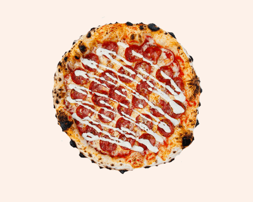 Tomato base, LP cheese blend, pepperoni, red onion, ranch sauce