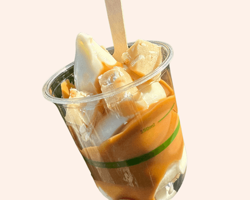 Vanilla soft-serve, dulce de leche caramel sauce, cookie dough