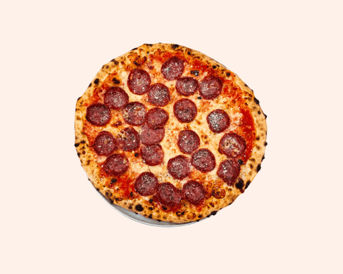 Tomato base, LP cheese blend, pepperoni, oregano, parmesan